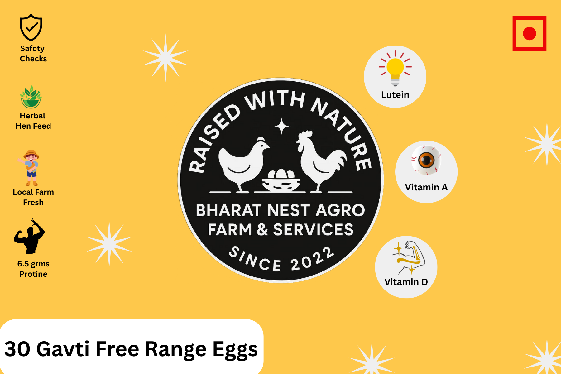 A 30-pack of Gavti eggs consists of 30 brown eggs from local, free-range, native Indian breed chickens known as “desi” or “gavran” chickens. These eggs are typically considered healthier and more natural than conventional eggs, with a richer flavor and higher nutritional content, including beneficial omega-3 fatty acids, as the hens forage for their own food.